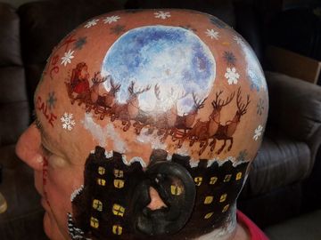 Full head bald cap with make-up. Certain appliances I can help you put on correctly. Talk with me for what you need.